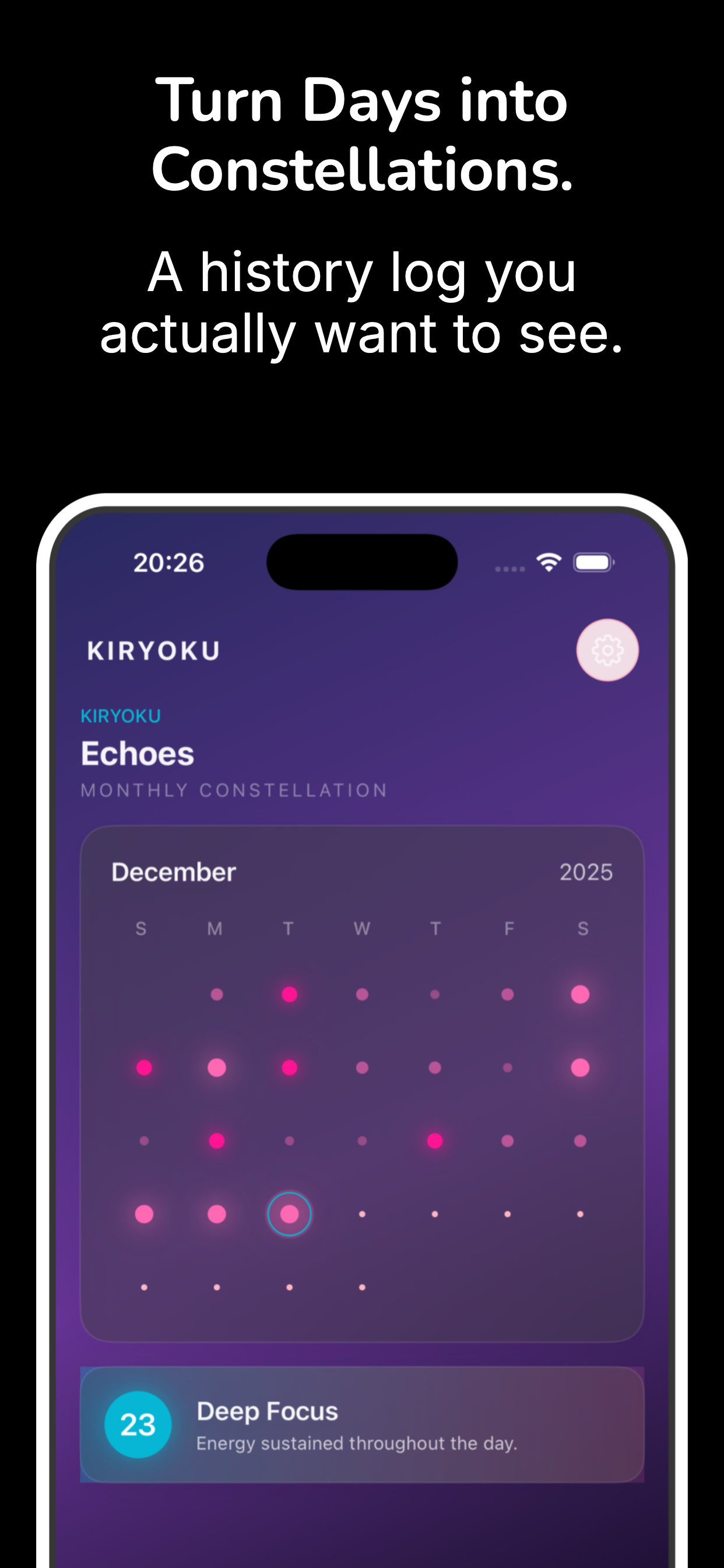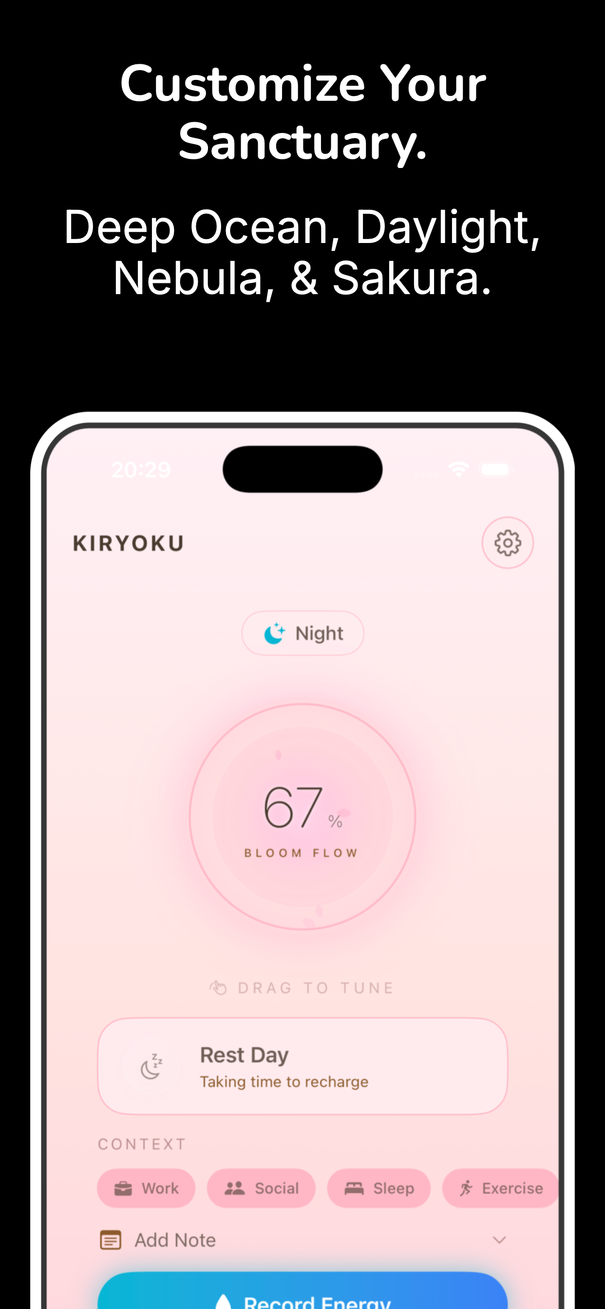 Energy ebbs and flows like water. KIRYOKU helps you track these patterns before burnout hits.